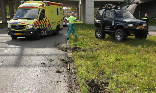 Schiedam – Donderdag aan het einde van de middag is een man met zijn auto over de kop geslagen op de Laan van Bol’s Schiedam. Vlak voor de grens met Vlaardingen brak de achteras van de auto waardoor de bestuurder de macht over het stuur verloor. De auto sloeg over de kop en kwam weer op zijn vier wielen tot stilstand. Omstanders verleenden eerste hulp totdat de ambulance en de politie ter plaatse waren. Het slachtoffer heeft erg veel geluk gehad en is per ambulance overgebracht naar het ziekenhuis. De auto kan als afgeschreven beschouwd worden en is door een berger meegenomen.