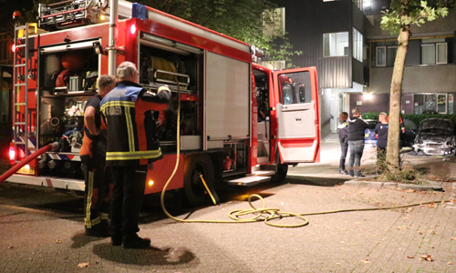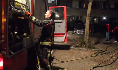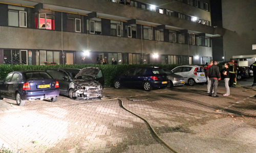 Gouda- Zaterdag op zondagnacht werd de brandweer gealarmeerd voor een voertuigbrand aan de Zuidhoef in Gouda. Nog voor men ter plaatse kwam werd er opgeschaald naar “middelbrand’. Ter plaatse bleken er niet 1, maar 2 voertuigen in de brand te staan. Beiden ongeveer 25 meter van elkaar verwijderd en nabij andere personenauto’s en woningen. De reden waarom er werd opgeschaald.Echter werd brandweer Reeuwijk al vrij snel afgemeld. Brandweer Gouda kon de beiden voertuigen zelf blussen en voorkomen dat deze uitbreidde. Wel kwam bij de blussing veel rook vrij. Nadat de branden waren geblust kon men weer opruimen om uiteindelijk weer retour naar de kazerne te gaan. Politie zal onderzoek verrichten na de branden.