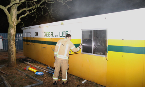 Schiedam – De brandweer heeft dinsdagavond een brand in een bouwkeet aan de Munterstraat geblust. Even voor elf uur kwam de melding binnen. De brandweer kwam met spoed ter plaatse en had daarna de brand snel onder controle. Nabij de brand werd een fles aangetroffen. Het vermoeden bestaat dat de inhoud van de fles is gebruikt om de brand aan te steken. De politie heeft onder andere deze fles veiliggesteld en zal verder onderzoek doen.