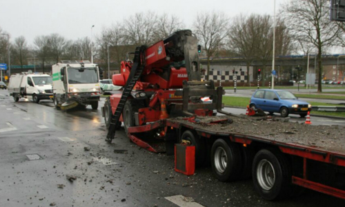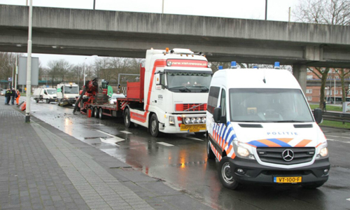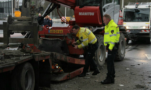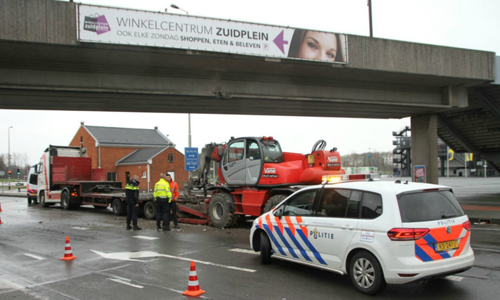 Rotterdam – Op de Zuiderparkweg in Rotterdam is maandagochtend een graafmachine van een vrachtwagen gevallen. De graafmachine stond op een oplegger en toen de vrachtwagen onder het viaduct door reed werd het viaduct geraakt. Het viaduct raakte behoorlijk beschadigd. De brokstukken vielen op de weg en door de klap schoof de machine van de oplegger af. Er vielen geen gewonden. De politie bekijkt of er fouten zijn gemaakt door de chauffeur wat betreft de lading.