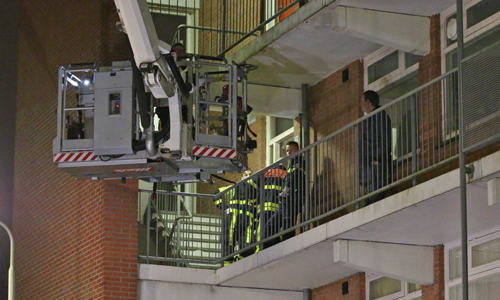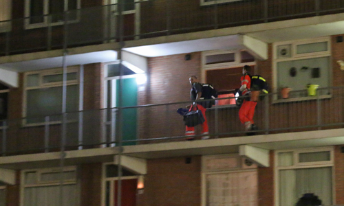 Delft – Vrijdagavond 27 januari heeft zich in een woning aan de Van der Horststraat een medische noodsituatie voorgedaan. Politie, twee ambulance’s en het MMT kwamen met spoed ter plaatse. De arts en verpleegkundige van het MMT waren als eerste ter plaatse en hebben medische hulp verleend aan het slachtoffer. Het personeel van beide ambulance’s heeft bij aankomt het personeel van het MMT geassisteerd. Omdat de lift van de portiek te klein was voor de brancard is de brandweer met spoed ter plaatse gekomen. Nadat de hoogwerker was opgesteld is de patiënt naar beneden gehaald en in de ambulance gelegd. Het slachtoffer is hierna met A2 (Geen spoed) vervoerd.