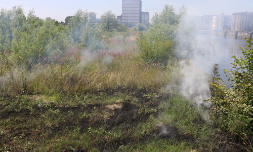 Delft – Tijdens het verbranden van onkruid bij de Wateringseweg in Delft ging het vanmiddag mis. Het vuur sloeg over naar het grasveldje op het terrein van de DSM.