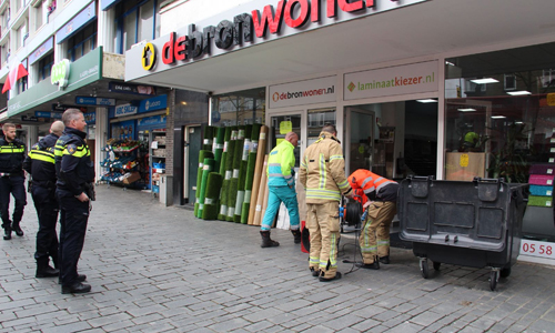 Schiedam – Dinsdagochtend werd de brandweer gealarmeerd voor een melding gebouwbrand op de Broersvest in Schiedam. Het ging hierbij om een mogelijke explosie in een winkel. De brandweer haalde een gasfles uit een container die behoorlijk beschadigd was. Ook een ambulance kwam ter plaatse om een gewonde na te kijken. Het slachtoffer is vervoerd naar het ziekenhuis. Wat er precies is gebeurd is niet bekend. De brandweer heeft het pand geventileerd.