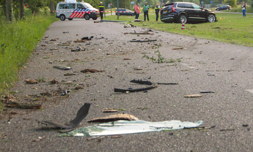 Vlaardingen – Een automobilist is zaterdagavond met zijn auto frontaal tegen een boom geklapt op de Watersportweg in Vlaardingen. De auto kwam zo’n 65 meter verder tot stilstand nadat er ook nog een lantaarnpaal uit de grond was gereden. De klap was zo hard dat de deur van de bestuurder in de boom achter bleef. De bestuurder had twee kinderen van ongeveer 6 jaar achterin de auto zitten. Als een wonder liepen de meisjes geen verwondingen op. Zij werden opgevangen totdat de hulpdiensten (brandweer, traumahelikopter, ambulance en politie) ter plaatse waren. De brandweer heeft de bestuurder uit de auto gehaald waarna hij met onbekend letsel is overgebracht naar het ziekenhuis. De politie heeft een uitgebreid onderzoek gedaan naar de toedracht van het ongeval.