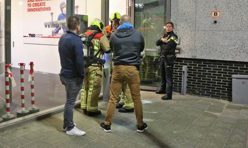Delft – Donderdagavond 26 oktober werdt de brandweer van Delft gealarmeerd voor een ‘OMS’ (Openbaar Meld Systeem) melding in een gebouw van de TNO aan de Van der Waalweg in Delft. Ter plaatse trof de brandweer in het pand forse rookontwikkeling aan, zowel in de kelder als op de bovenliggende verdiepingen stond flinke rook. De brandweer heeft na +- 25 minuten besloten om op te schalen naar het sein ‘Middelbrand’. Dit betekent dat een extra tankautospuit uit Pijnacker- Nootdorp ter plaatse is gekomen om mee te helpen zoeken naar de locatie van de brand.