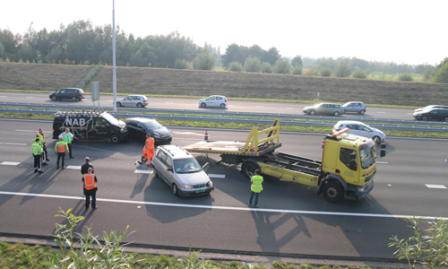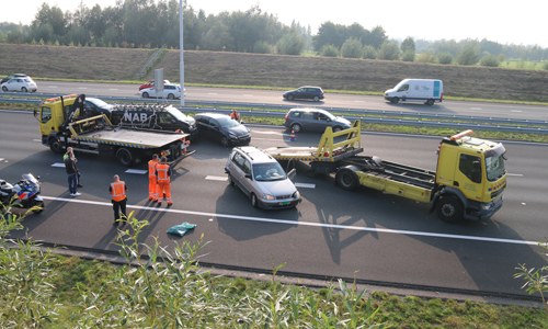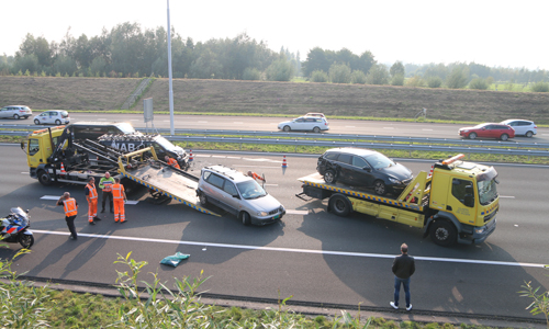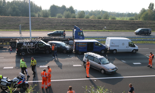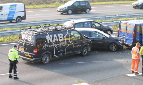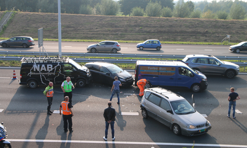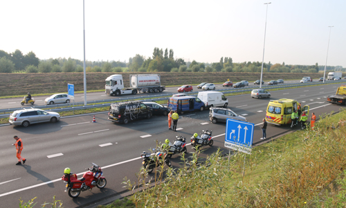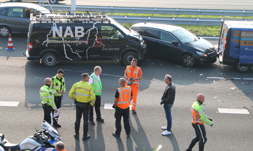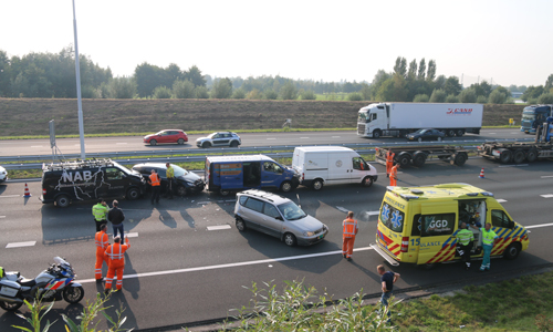 Schipluiden – Op de A4 vanuit Rotterdam heeft woensdagmiddag een flinke aanrijding plaatsgevonden. Ter hoogte van Schipluiden, vlak voor de afrit naar Delft, kwamen twee auto’s en drie busjes met elkaar in botsing. Gevolg was dat drie van de vier rijbanen afgesloten zijn voor verkeer. Één gewonde is zonder spoed naar het ziekenhuis vervoerd. De file was flink. Firma Vermeulen heeft het wegdek gereinigd, hiervoor is de A4 tijdelijk volledig dicht geweest. Bergingsbedrijven hebben twee personenauto’s en twee busjes meegenomen.