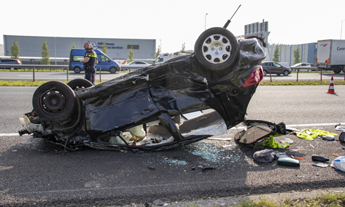 Rotterdam – Op de snelweg A15 Ridderkerk -> Rozenburg, ter hoogte van Pernis is woensdagmiddag een auto ondersteboven beland na een botsing. Naast brandweer en ambulance is ook de traumaheli ter plaatse gegaan. Deze is op de snelweg geland, waardoor de parallelrijbaan tijdelijk was afgesloten.