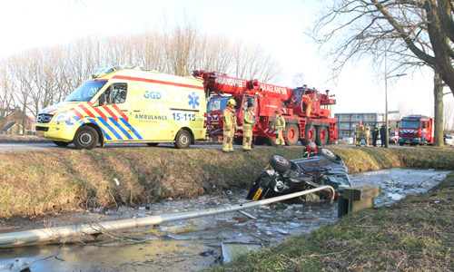 Pijnacker – Woensdagmiddag 28 februari is er op de Noordweg een auto te water geraakt na een eenzijdig ongeval. De brandweer en ambulancedienst rukte groots uit, ter plaatse bleek er daadwerkelijk een voertuig in het water te liggen. De automobilist ramde eerste een lantaarnpaal voordat deze te water ging. De bestuurder kon zelfstandig uit het voertuig komen. Hierna werd hij door het ambulancepersoneel gecontroleerd, waarna het slachtoffer met spoed vervoerd werd naar het ziekenhuis. De Noordweg was door het ongeval in beide richtingen afgesloten. Doormiddel van de kraan van de brandweer werd het voertuig uit het water gehaald. Hierna is het voertuig door een berger afgevoerd.