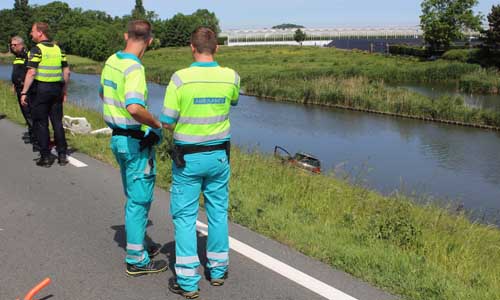 ‘s-Gravenzande – Zondagochtend 28 mei werden de hulpdiensten groots gealarmeerd voor een voertuig te water aan de Maasdijk in ‘s-Gravenzande. Omdat de melder aangaf dat de personenauto in het water lag is de brandweer in grote getallen gealarmeerd. O.a. de duikers van kazerne’s Delft, Schiedam en Den Haag werden gealarmeerd. Ter plaatse bleek een vrachtwagen een kop-staart aanrijding te hebben gehad met een personenauto.