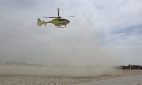 Hoek van Holland – Zondagmiddag 28 mei heeft er een medische noodsituatie plaatsgevonden op het strand van Hoek van Holland. Twee jongeren waren gemoedelijk aan het stoeien tijdens een rugbytoernooi toen een van hen een knietje in de rug kreeg. Naar aanleiding van de melding is naast een ambulance, ook de traumahelikopter ter plaatse gestuurd. De helikopter landde op het strand. Na stabilisatie in de ambulance is het slachtoffer naar het ziekenhuis vervoerd. De arts van het MMT bleek niet mee naar het ziekenhuis te hoeven rijden.