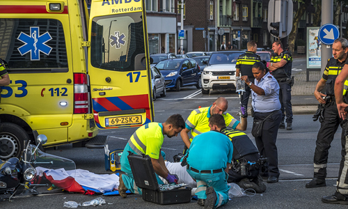 Rotterdam – Op het Marconiplein in Rotterdam is dinsdagavond een man gewond geraakt bij een aanrijding tussen een tram en een brommer. De brommer werd geschept door de tram op de drukke kruising. Een traumahelikopter werd voor het ongeval opgeroepen. Het slachtoffer is door ambulancepersoneel behandeld aan zijn verwondingen. Later is het slachtoffer naar het ziekenhuis gebracht. De politie doet onderzoek naar de toedracht van het ongeval.