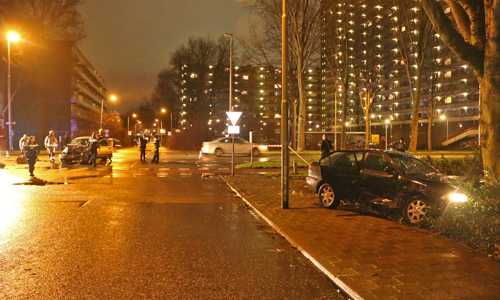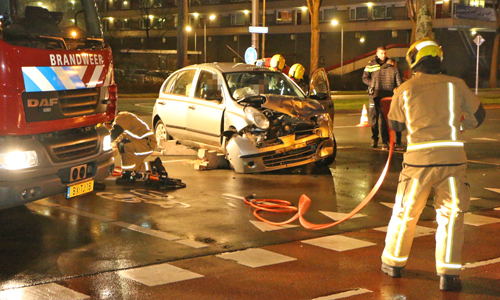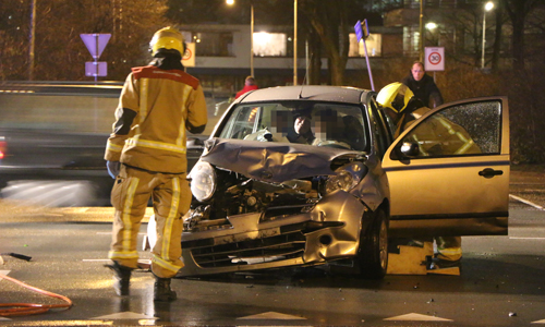 Delft – Maandagavond 29 januari zijn de politie, de ambulancedienst en de brandweer gealarmeerd voor een ongeval op de Voorhofdreef in Delft. Ter plaatse bleek er een ongeval te hebben plaatsgevonden tussen twee auto’s. Beide auto’s liepen flinke schade op, 1 van de voertuigen is na de aanrijding tegen een boom gereden. In een van de voertuigen zitten nog twee personen, de brandweer bekijkt of het nodig is om deze met bevrijdingsgereedschap te bevrijden.