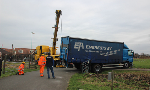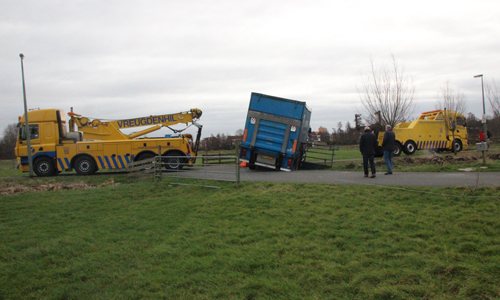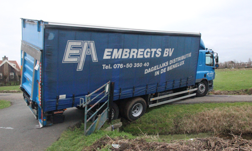 Vlaardingen – Maandagochtend heeft een vrachtwagenchauffeur zich vergist in een bocht aan de Woudweg in Vlaardingen. Bij het nemen van een bocht kwam hij vast te zitten in het gras, en deels in een sloot. De weg is hierbij gesperd geraakt. De vrachtwagen was volgeladen met augurken. Een bergingsbedrijf is opgeroepen om de vrachtwagen weer los te trekken.