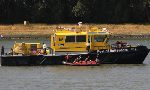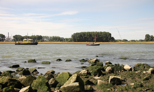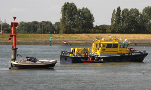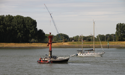 Vlaardingen – Op de Nieuwe Waterweg ter hoogte van het Oeverbos heeft een plezierjacht zich zondagochtend in de problemen gewerkt. Door nog onbekende oorzaak is de verkeerde kant van een baken gepasseerd, waardoor de boot tegen een strekdam is aangevaren. Het schip is niet zelfstandig in staat om tegen de sterke stroming in achteruit te varen. De aanwezige brandweerboot is echter te klein om de boot op sleeptouw te nemen. Ook de RPA02 van het havenbedrijf kan niet veel betekenen omdat het te ondiep is. Na enige tijd zijn de opvarenden van boord gehaald. Bij passerende vaart was de golfslag dermate hoog dat de boot dreigde te kapseizen. De RPA02 heeft een vrouw in de haven van Maassluis afgezet, de man is terug aan boord gegaan en hoopt zijn boot bij de getijdewisseling alsnog los te kunnen krijgen.