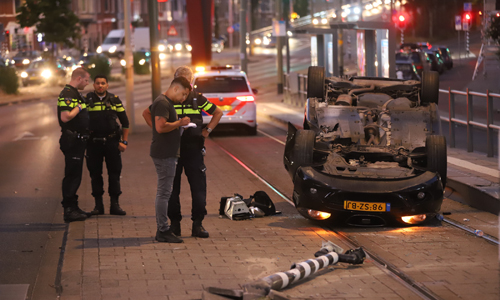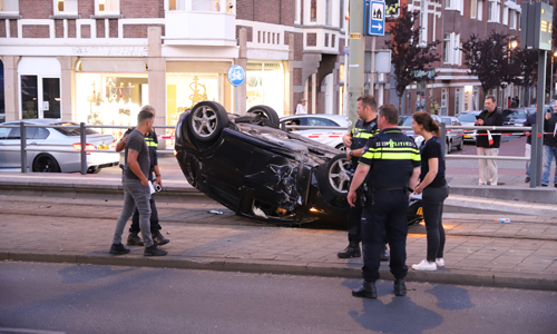 Den Haag – Een automobilist is vrijdagavond door nog onbekende oorzaak tegen een paal aan geknald en op z’n kop tot stilstand gekomen. Dit gebeurde op het Rijswijkseplein in Den Haag. De brandweer werd opgeroepen en kwam ter plaatse, maar hoefde geen inzet te verrichten. De bestuurder kon met enige hulp uit de auto worden gehaald. De bestuurder werd in de ambulance nagekeken. Of het slachtoffer is vervoerd is niet bekend. Door het ongeval is er een grote verkeerschaos op en rondom het Rijswijkseplein. Ook tram 17 richting Wateringen rijdt een omleiding via station Hollands Spoor.