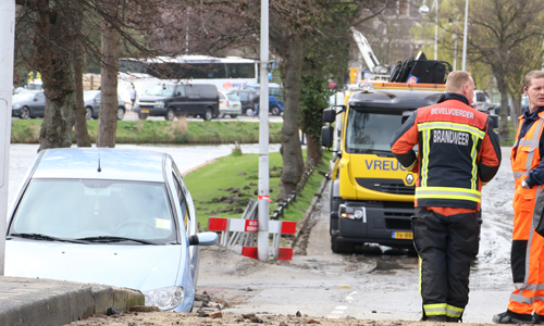 Leiden – Dinsdagmiddag werden diverse hulpdiensten gealarmeerd voor een wateroverlast aan de Rijnsburgersingel in Leiden. Ter plaatse bleek er door een nog onbekende reden een waterleiding te zijn gesprongen waardoor de hele straat blank stond en nabij een brug een kleine ”Sinkhole” was ontstaan waarin een auto terecht was gekomen. De brandweer besloot al vrij snel op te schalen naar ” Middel Hulpverlening” en uiteindelijk zelfs naar ” GRIP 1”. Waarop naast diverse eenheden uit leiden zelf, ook eenheden uit Alphen a/d Rijn, Gouda en Waddinxveen naar het incident werden gestuurd. Naast de brandweer kwamen ook de instanties zoals Dunea bij het incident om te proberen het lek te dichten, hierdoor moest de leiding wel worden afgesloten waardoor er diverse woningen tijdelijk geen water meer hadden. Terwijl de brandweer ondertussen met diverse pompen het water probeerde weg te krijgen. Een bergingsbedrijf het de auto uit het gat getakeld. Omstreeks half 5 konden de hulpdiensten weer retour.