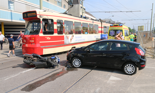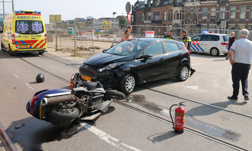 Delft – Maandagmiddag heeft er een ongeval plaatsgevonden tussen een motor en een personenauto op de Phoenixstraat in Delft. Een motorrijder werd aangereden door een personenauto tijdens in inhaalactie. Er zijn in totaal twee personen gecontroleerd door de ambulancedienst, uiteindelijk zijn beide personen met A2 (Zonder Spoed) vervoerd naar het ziekenhuis. De verkeerspolitie is kort ter plaatse voor een onderzoek. Tram 1 had een lange vertraging door het ongeval. Een bergingsbedrijf is ter plaatse gekomen en heeft de motor en de personenauto geborgen.