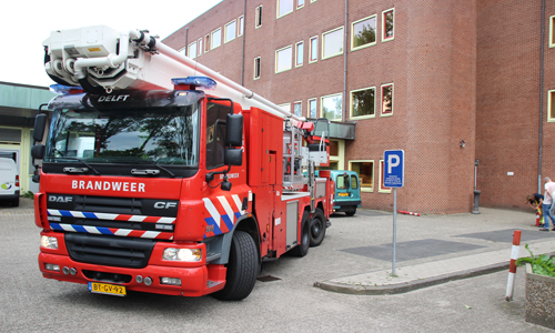 Delft – Donderdagavond 3 augustus is de hoogwerker van kazerne Delft gealarmeerd voor een stormschade melding aan de Beukenlaan in Delft. Ter plaatse bleek er bij een verzorgingstehuis een gevelplaat los te hangen. De brandweer heeft de hoogwerker opgesteld en is samen met een personeelslid van het verzorgingstehuis naar boven gegaan. Met een aantal spijkers en een hamer heeft de brandweer samen met het personeelslid de gevelplaat vastgetimmerd. De brandweer kon hierna retour.