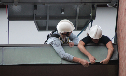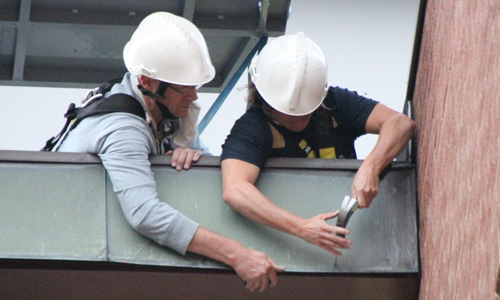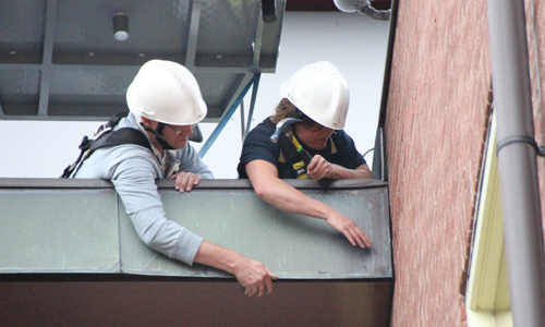 Home Delft 3 augustus Brandweer maakt losse gevelplaat vast Beukenlaan Delft