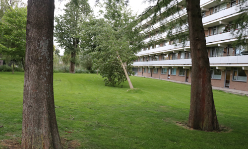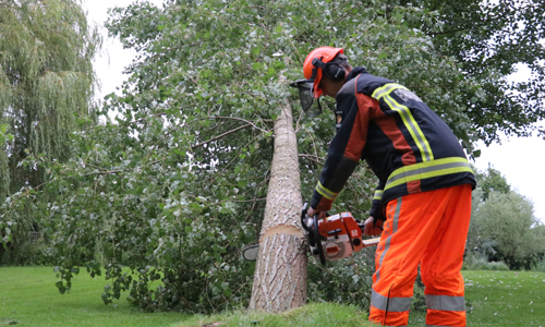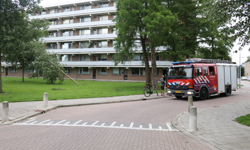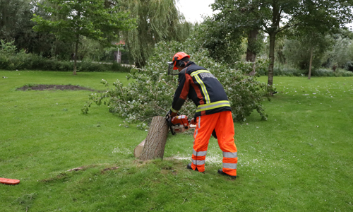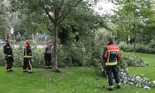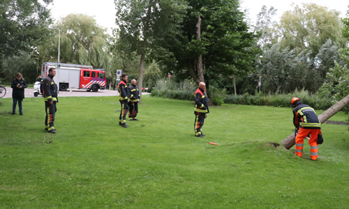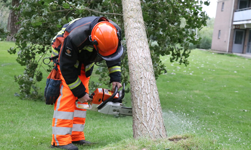Gouda – Rond 5 over 8 vanavond werd de brandweer van Haastrecht gealarmeerd voor een stormschade aan de Marathonlaan in Gouda. Hier was door de harde wind een boom omgevallen. Waardoor een bewoner van de naastgelegen flat besloot de brandweer te bellen welke snel ter plaatse kwam. Na aankomst heeft de brandweer met een kettingzaag de boom van zijn stam gezaagd. Waarna ze ook direct een aantal tak van een naastgelegen boom ook hebben los gezaagd, alleen dit keer met een handmatige zaag. Gemeente zal de boom morgen verder in stukken zagen en/of verwijderen.