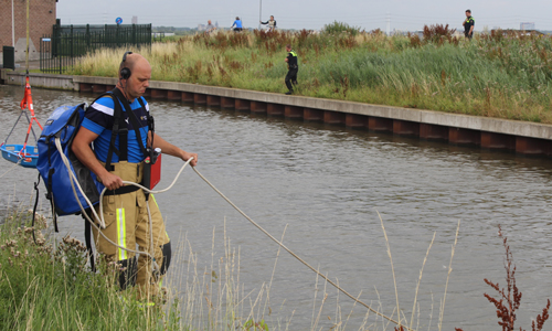 Kwintsheul- Hulpdiensten werden maandagmiddag 3 juli groots gealarmeerd na een melding over een persoon te water langs de Veilingroute ter hoogte van Kwintsheul. Een automobilist reed in de richting van Wateringen toen hij rechts van zich een persoon in het water zag. Toen hij zijn auto parkeerde en terug liep was er echter niemand meer te zien en het ergste werd gevreesd. De brandweer rukte groots uit en stuurde de kazernes Honselersdijk, Naaldwijk, Delft, Den Haag/Centrum met diverse eenheden ter plaatse. Twee duikteams zijn ingezet en daarom is er opgeschaald naar Middel Duikalarm. De duikers hebben samen met brandweermannen in waadpakken het water afgezocht. Twee ambulances stonden paraat mocht er iemand uit het water worden gehaald. Na grondig het water te hebben afgezocht is er niemand aangetroffen en konden de eenheden retour. Tijdens het incident was de Veilingroute in beide richtingen dicht tussen de Zwethlaan en de Van Luyklaan. Ook het naastgelegen gemaal is stilgelegd.