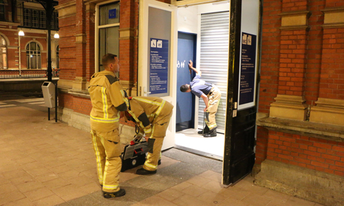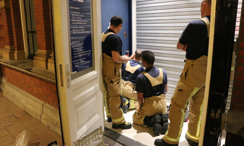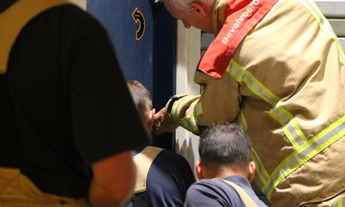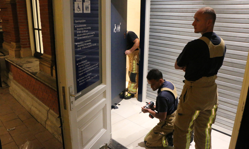Den Haag – De brandweer werd in de nacht van zaterdag op zondag gealarmeerd voor een melding bij station Holland spoor in Den Haag. Hier waren medewerkers van NS Veiligheid & Service bezig met het controleren van de toiletten op de persons. Eén van de toiletten zat op slot. Na meerderen malen roepen bleef het stil achter de deur. Hierop werd besloten om de brandweer ter plaatse te laten komen om de deur open te maken. Nadat de brandweer de cilinder uit het slot had gehaald bleek dat er niemand achter de deur zat.