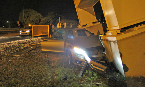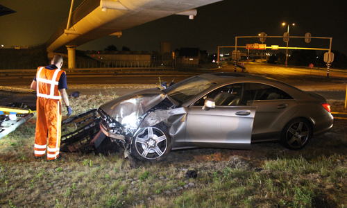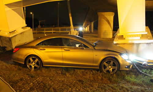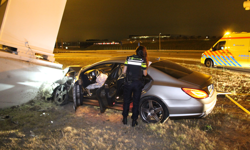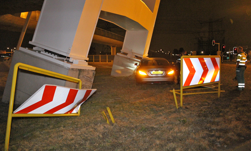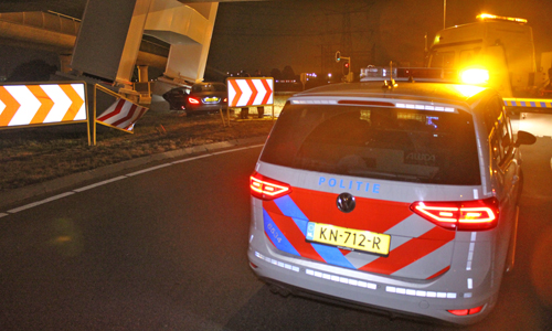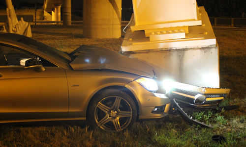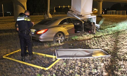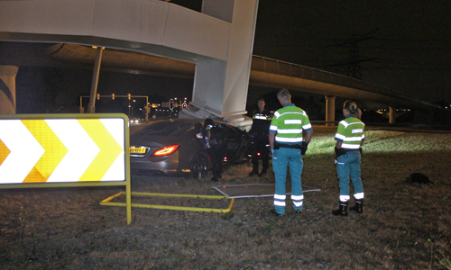 Naaldwijk – De hulpdiensten kregen zaterdagochtend 3 juni iets voor half drie een melding over een aangetroffen auto tegen een betonblok op het Vlietpolderplein in Naaldwijk. Ter plaatse aangekomen hulpverleners troffen een Mercedes met een cataloguswaarde van ruim 114 duizend euro aan tegen een pilaar van de Snelbinder, een fietsbrug over het Vlietpolderplein heen.