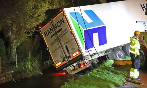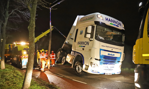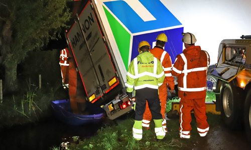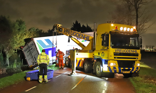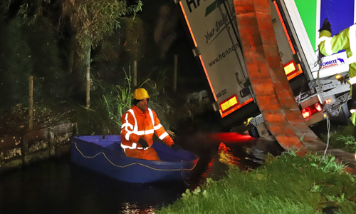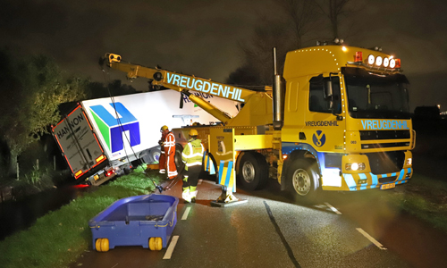 Maasland – Dinsdagavond 30 oktober is er op de Herenlaan in Maasland bijna een trekker met oplegger te water geraakt. Het ging mis toen de chauffeur een weg in reed waar vrachtwagens niet verder konden. De chauffeur dacht te kunnen keren en ging achteruit met zijn combinatie, de trailer raakte hierdoor te water en trok de trekker een deel mee. De chauffeur van de combinatie kon zelfstandig uit zijn voertuig komen, een bergingsbedrijf heeft met groot materiaal de combinatie weer op de weg kunnen trekken. De schade aan de combinatie valt mee. Door de bergingsactie was de Herenlaan lange tijd afgesloten.