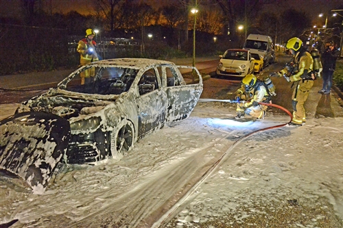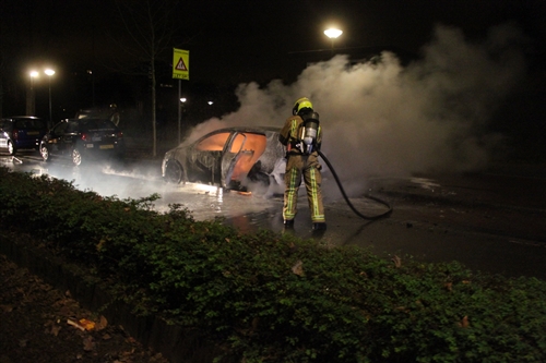 Den Haag – Bij een autobrand aan het Kleine Loo in Den Haag is vannacht vuurwerk ontploft. De brandweer werd iets na twee uur gealarmeerd en bij aankomst stond de auto volledig in brand. De brandweer heeft de brand met water en schuim geblust. In de auto lag volgens de melder vuurwerk. Dit is tijdens de brand ontploft. De politie heeft de zaak in onderzoek. Waarschijnlijk is de brand aangestoken.