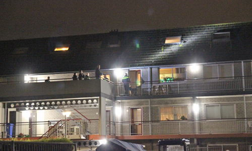 Hierna vluchtte hij naar de zolder. De man riep vanuit zijn open raam meerdere malen dat de politie niet naar boven moest komen. Ook riep hij beledigende teksten. Toen de politie dreigde om met een hond naar binnen te komen gaf hij zich over en kwam naar buiten. Maar toen de man éénmaal op de galerij stond ging het zich weer hevig verzetten tegen de politie.