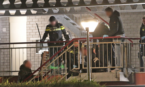 Met veel moeite kon de man naar de grond worden gewerkt en daarna via de trap naar beneden worden gebracht. Ook dat ging niet zonder slag of stoot. Nadat de man met veel moeite de politieauto in was gezet, werd hij met spoed afgevoerd.