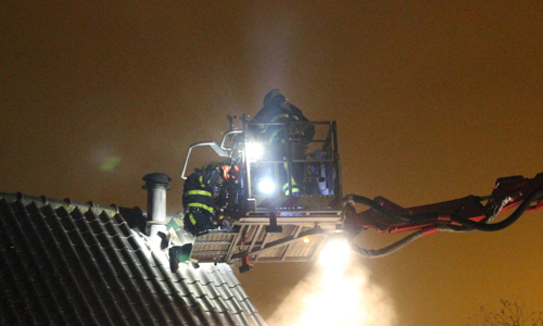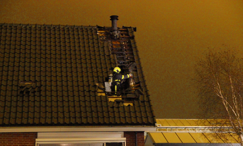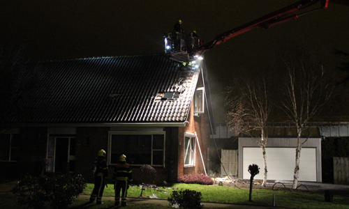 Honselersdijk – Maandagavond werd de brandweer gealarmeerd voor een woningbrand op de Harteveldlaan in Honselersdijk. De brand woedde voornamelijk in het dak. De bewoners hebben een eerste bluspoging gedaan, de brandweer heeft dit bij aankomst overgenomen. Er werd opgeschaald naar middelbrand, omdat de bemanning van beide tankautospuiten werd ingezet. De gealarmeerde ambulancedienst heeft de bewoners gecontroleerd op eventuele rookinhalatie, maar uiteindelijk is er niemand vervoerd naar het ziekenhuis. De brandweer heeft de hoogwerker opgesteld om een gedeelte van het dak te slopen en te kunnen blussen. Nadat de rook was verdwenen gaf de brandweer het sein ‘brand meester’. In de woning was ook een jongetje aanwezig maar hij werd gelukkig optijd gewekt door papa. Alle gezinsleden brengen de nacht door bij de buren. Stichting Salvage kwam ter plaatse voor verdere afhandeling.