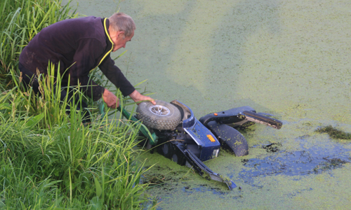 Nieuwerkerk aan den IJssel – Zondagochtend werden de politie en de ambulancedienst gealarmeerd voor een ongeval op de Bermweg in Nieuwerkerk aan den IJssel. Ter plaatse was er een man met zijn scootmobiel te water geraakt. De man is door omstanders uit water getrokken. De ambulancedienst heeft de man gecontroleerd op eventueel letsel, uiteindelijk is de man met A2 (Zonder Spoed) vervoerd naar het ziekenhuis. Een buurtbewoner heeft een graafmachine gehaald en heeft met verschillende touwen de scootmobiel uit het water getild. Hoe de man met zijn scootmobiel te water heeft kunnen raken is niet bekend. De Bermweg was ten tijden van het incident afgesloten.