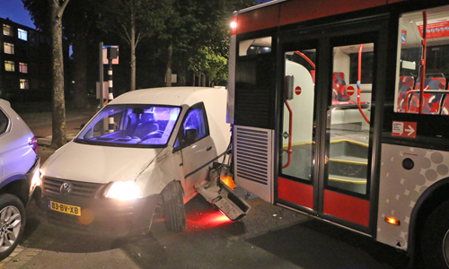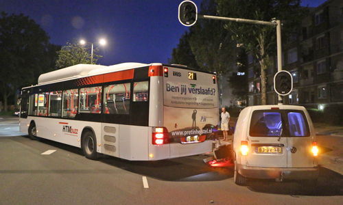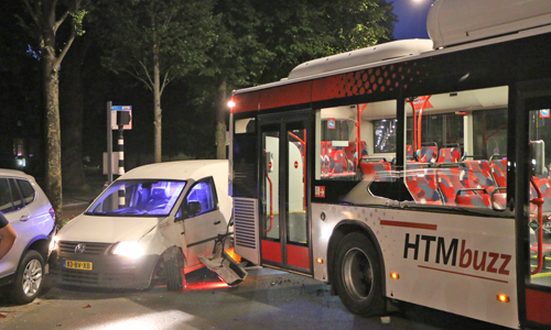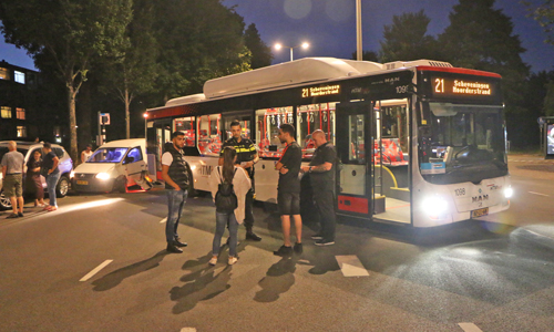 Den Haag – Zaterdagavond 30 juni heeft er op de Erasmusweg in Den Haag een ongeval plaatsgevonden tussen een lijnbus en een bestelbusje. Volgens getuigen kwam de bestelbus met volle vaart de kerende bus tegemoet, hij probeerde achter de bus langs te passeren maar dit lukte niet. Hierdoor knalde het bestelbusje tegen de lijnbus en tegen een geparkeerde auto. De Erasmusweg is afgesloten door het ongeval. De automobilist van de auto is na de aanrijding begonnen met vechten, hij is aangehouden door de politie.