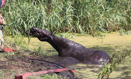 Schiedam – Zaterdagmiddag heeft de brandweer geholpen om een paar uit de sloot te halen in een weiland achter de Kerkweg. Het paard was behoorlijk vast komen te zitten in de modder. Met veel inspanning lukte het na lange tijd om het dier weer veilig op het droge te krijgen. De inspanning kostte bijna een uur tijd en de inzet van 6 brandweermannen en mensen van de manege.