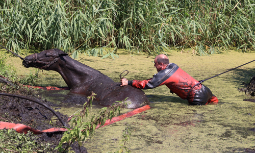 30 juni Brandweer redt paard uit de sloot Kerkweg Schiedam