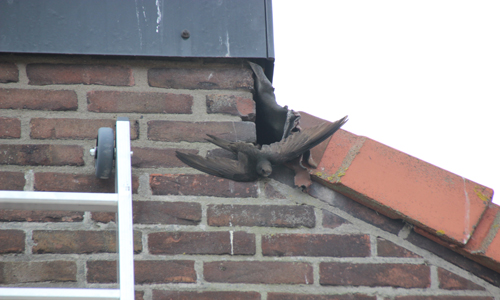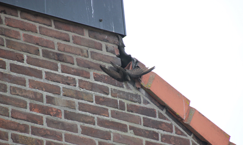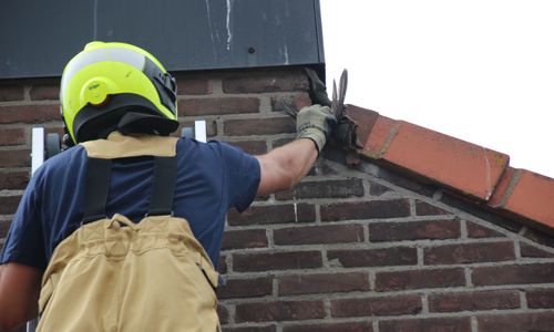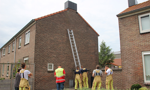 Poeldijk – Bewoners van een woning aan de Julianastraat hoorde vrijdagmiddag een raar geluid aan de zijkant van hun woning. Het was het geluid van een vogeltje. Toen zij een kijkje ging nemen zagen zij dat er een spreeuw vast zat in een klein gat aan de zijkant van het dak. De bewoner zocht naar een ladder maar kon deze niet vinden. Toen belde zij de dierenambulance. Toen de dierenambulance ter plaatse kwam werd door hun al snel de brandweer opgeroepen omdat zij er zelf nooit bij zouden komen. Door hulp van de brandweermannen van Monster werd het diertje bevrijd en overgedragen aan de dierenambulance.
