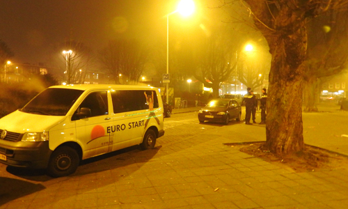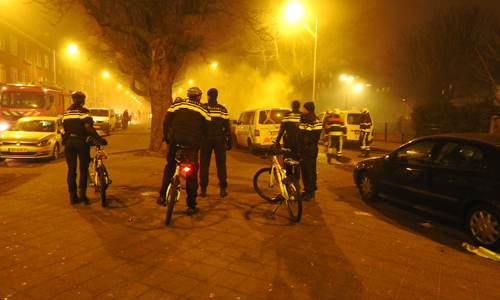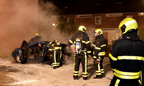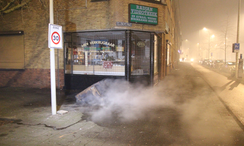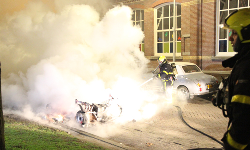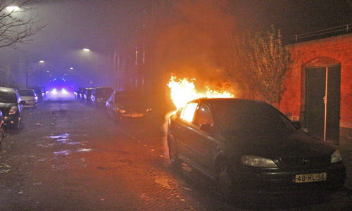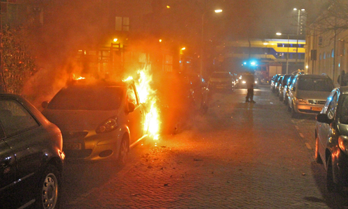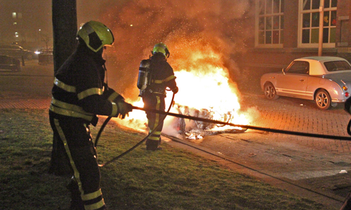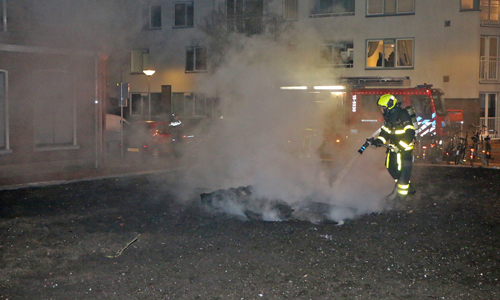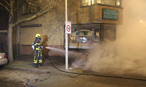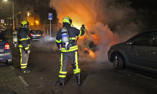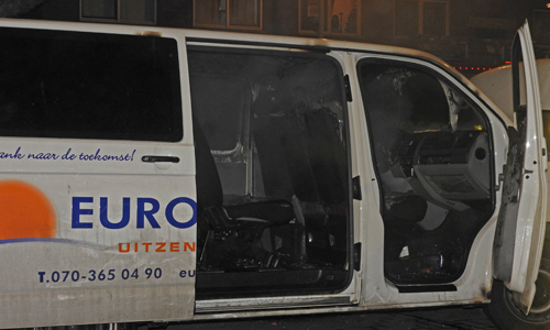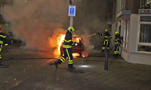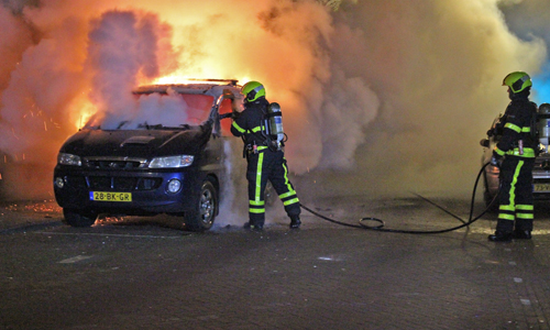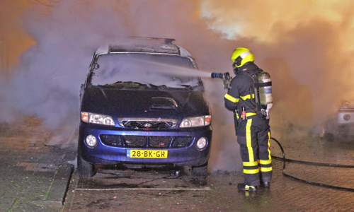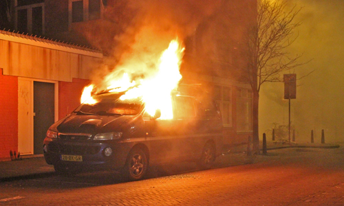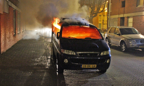 Den Haag – De brandweer werd om 22:08 uur opgeroepen voor een voertuigbrand op de Kaapstraat in Den Haag.  Vandalen hebben daar een vuurwerkbom gegooid op een busje, waarna deze via een gat in een zijraam in het busje terecht kwam. Het busje kwam in brand te staan en de brandweer moest eraan te pas komen om te blussen.