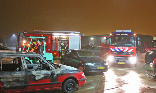 Den Hoorn – Op het terrein van berger Vreugdenhil vlogen drie auto’s in brand. De brandweer kwam met drie voertuigen ter plaatse om de brandende auto’s te blussen. Hierbij kwam veel rook vrij, hoe de auto’s in de brand zijn gevlogen is niet bekend.