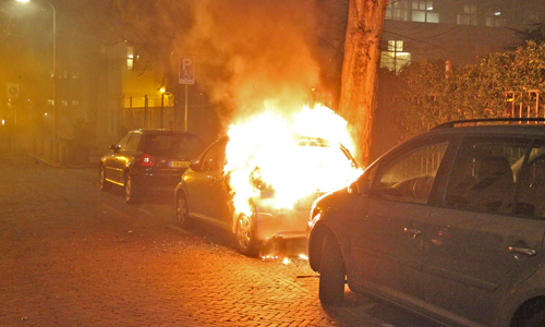 Den Haag – Aan de Van Osstraat in Den Haag ging een geparkeerde auto op in vlammen, buurtbewoners zagen na een knal iemand wegrennen. Hierna sloegen de vlammen al uit de auto. De brandweer heeft de auto geblust. De auto is total-loss en meegenomen door berger Vreugdenhil.