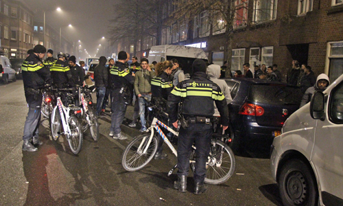 Den Haag – Aan de Schalk Burgerstraat in Den Haag zijn vijf personen aangehouden nadat deze agenten hadden beledigd. De politie was met veel agenten ter plaatse. De vijf verdachte zijn meegenomen naar het politiebureau.