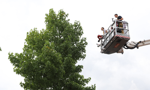 Den Haag – Dinsdagochtend 31 juli is de brandweer gealarmeerd voor een dier op hoogte aan de Buizerdlaan in Den Haag. Ter plaatse bleek er een vogel weggevlogen te zijn. De vogel zat hoog in een boom, de eigenaar die probeerde met een ladder de vogel te bereiken kwam niet ver en schakelde de brandweer in. De eigenaar is met een brandweerman in de hoogwerker omhoog gegaan. Toen het bakje dicht bij de boom kwam vloog de vogel weer weg.