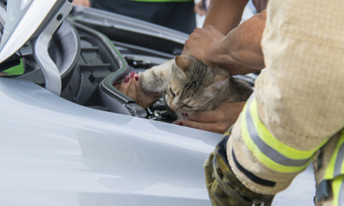 Rotterdam – Een kat kwam maandagmiddag door onbekende reden vast te zitten onder een motorkap van een auto die geparkeerd stond bij Rotterdam – The Hague Airport. Omdat de eigenaar de kat niet tussen de auto uit kreeg is besloten de brandweer te bellen. De brandweer heeft geprobeerd om de kat tussen de auto uit te halen maar dat was geen succes. Uiteindelijk is het gelukt de motorkap open te krijgen en de kat te bevrijden.