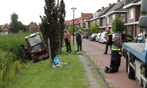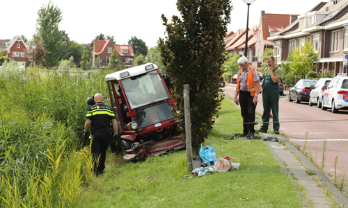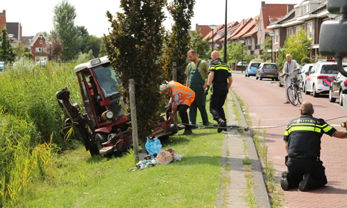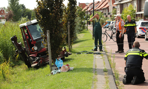 Den Haag – Op de Liemerssingel in Den Haag is maandagmiddag een maaimachine op zijn zijkant terecht gekomen. De bestuurder was de machine was bezig met het maaien van het gras in de berm vlakbij de waterzijde. Omdat het gedeelte schuin afliep kantelde de machine en kwam deze op de zijkant terecht. Omdat niet bekend was of de bestuurder gewond was werd er een ambulance gealarmeerd. Gelukkig bleek de bestuurder met de schrik vrij te zijn gekomen. De politie berger heeft de machine weer op zijn wielen kunnen zetten.