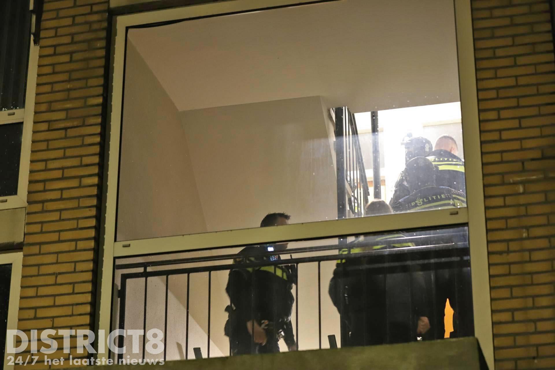 Uiteindelijk zijn de agenten een woning op de 2e verdieping van het portiek binnengegaan. Hier werd een 32-jarige man aangehouden. De man zou rond middernacht een vrouw zwaar mishandeld hebben in een woning aan de Van Embdenstraat in Delft.