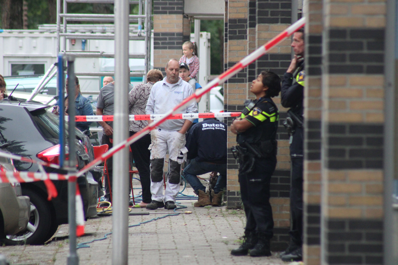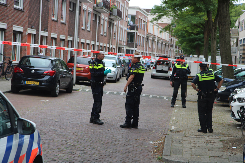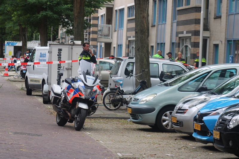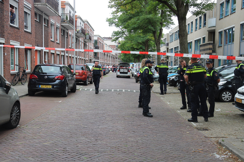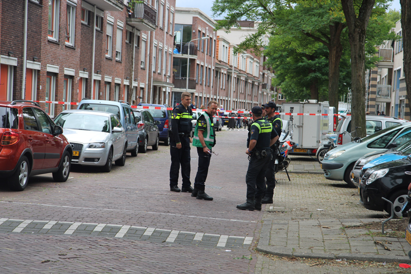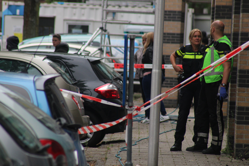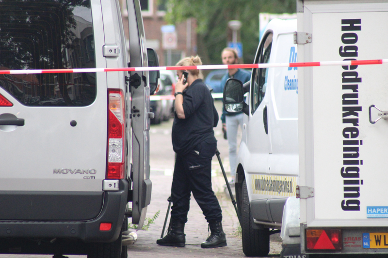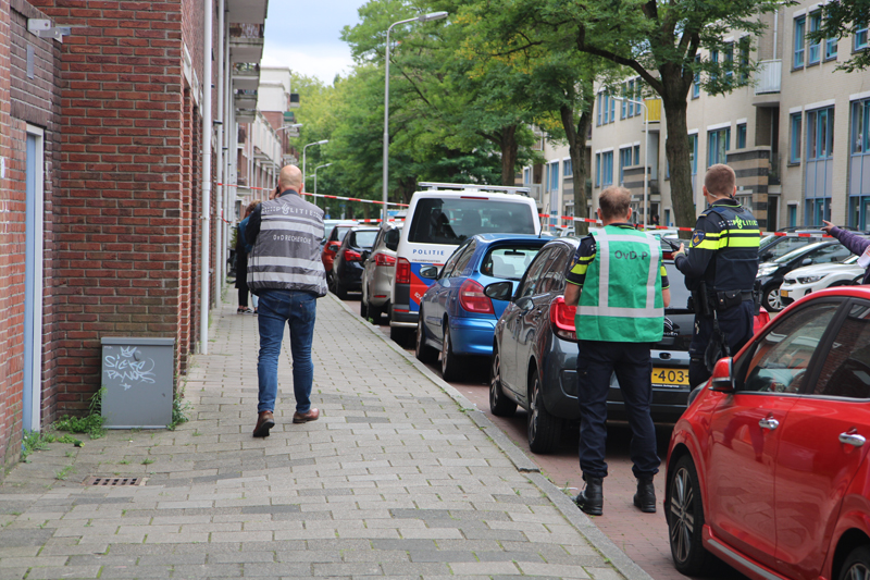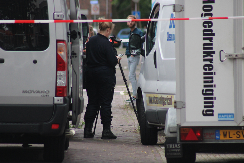 De politie die massaal ter plaatse is, heeft 1 persoon aangehouden die met een laken over het hoofd overgebracht is naar het politiebureau. De politie heeft een groot ‘plaats delict’ gemaakt in de straat en doet onderzoek naar wat zich precies afgespeeld heeft. Hiertoe doen meerdere agenten buurtonderzoek in de straat. Tevens doen meerdere rechercheurs van de politie onderzoek op het plaats delict.