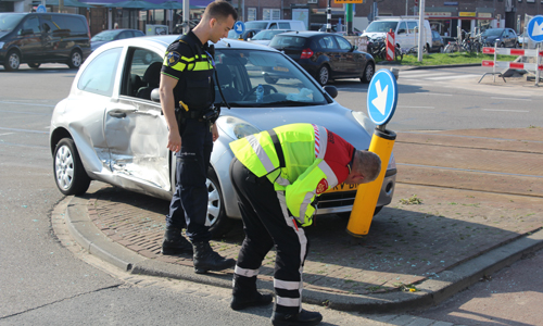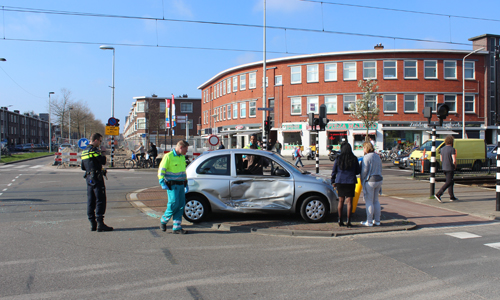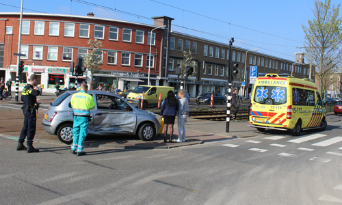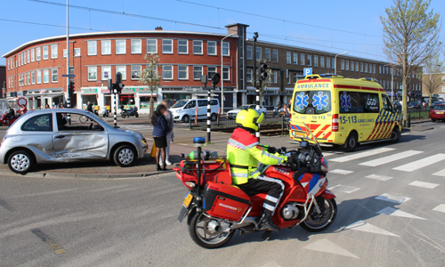 Op de Zuiderparklaan met de Apeldoornselaan in Den Haag heeft dinsdagmiddag een aanrijding plaatsgevonden. Twee voertuigen kwamen met elkaar in botsing. Bij het ongeval raakte de bestuurster van de grijze auto gewond. De bestuurster is op haar klachten en verwondingen nagekeken in de ambulance. Vervoer naar her ziekenhuis bleek niet nodig. Een gealarmeerde brandweermotor heeft beide voertuigen kort nagekeken op eventuele lekkages. Dit bleek niet het geval. Hoe de aanrijding heeft plaatsgevonden is niet bekend. Mogelijk is er een voertuig door rood gereden waarna een botsing onvermijdelijk was. Een berger kwam ter plaatse om de flink gehavende auto te bergen. De personenbus kon na de aanrijding zijn weg vervolgen.