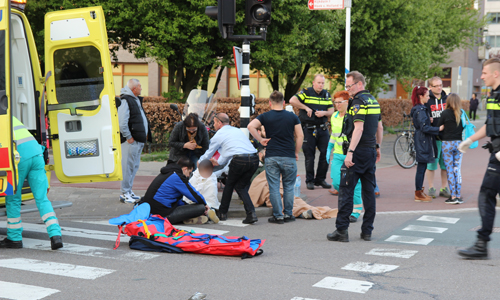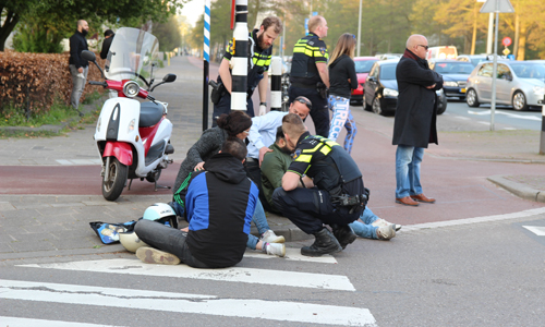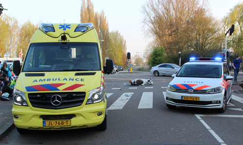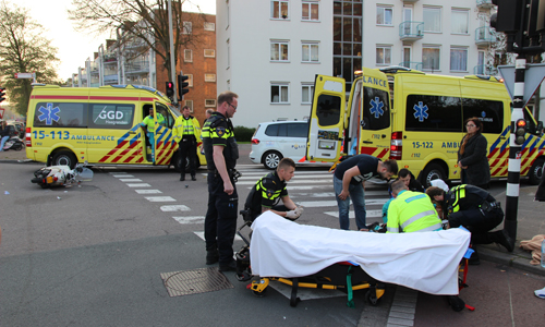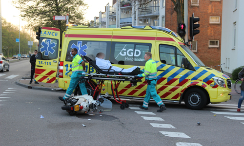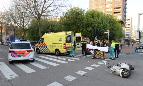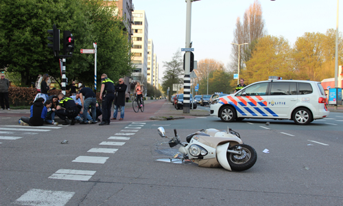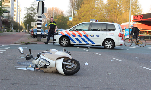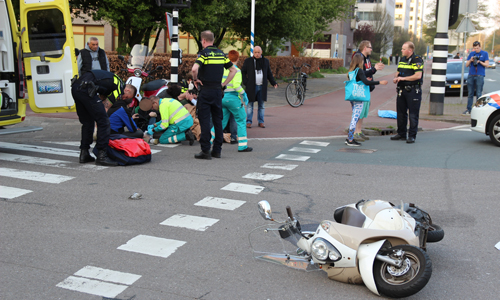 Den Haag – Op de Erasmusweg met de Leyweg in Den Haag heeft dinsdagavond een aanrijding plaatsgevonden tussen een auto en een scooter. De twee opzittende van de scooter kwamen hierbij hard ten val. De slachtoffers (een man en een kind) liepen beide letsel op. Twee ambulances kwamen ter plaatse. De man werd op een vacuümmatras gelegd. Het kind had letsel aan der been. Beide werden overgebracht naar het ziekenhuis. De verkeerspolitie kwam ter plaatse voor onderzoek.