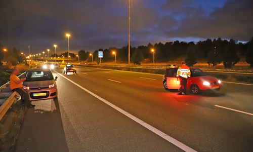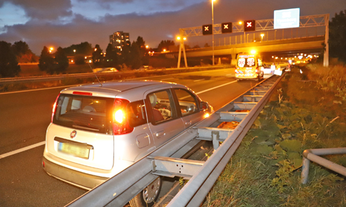Rijswijk – De A4 richting Amsterdam is zaterdagavond ter hoogte van afrit 11 Rijswijk volledig afgesloten na een ongeval onder het viaduct van de Prinses Beatrixlaan. Een automobilist schrok van de matrixborden boven de snelweg en belandde met volle vaart in de vangrail. Rijkswaterstaat besloot alle drie de rijstroken af te sluiten. Een ambulance werd opgeroepen voor de bestuurder. Uiteindelijk is de man nagekeken in de ambulance maar hoefde niet naar het ziekenhuis te worden vervoerd. Automobilisten werden achteraan het ongeval via afrit 11 de snelweg afgeleid. Vanaf de Prinses Beatrixlaan is het wel mogelijk de A4 weer op te gaan richting Amsterdam. Een automobilist negeerde de rode kruizen en kwam bij het incident, waar de weginspecteur van Rijkswaterstaat hem stopte. Hij wilde door in verband met zijn enkelband, maar dat mocht niet van Rijkswaterstaat. De man moest achteruit terug rijden, maar besloot al spook rijdend de snelweg te verlaten. De politie zal de automobilist hiervan bekeuren. Een berger heeft de auto uiteindelijk geborgen.