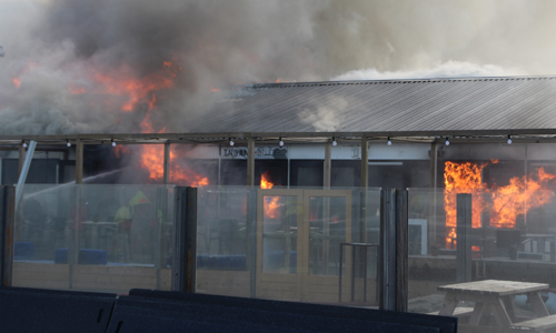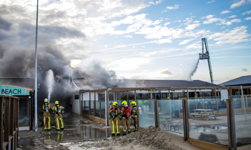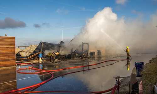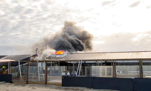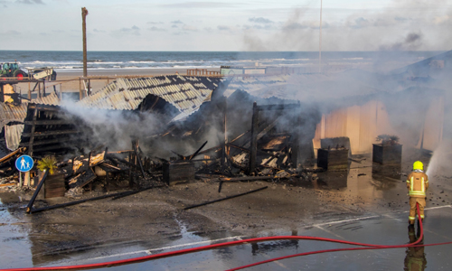 Hoek van Holland – Maandagochtend 4 december heeft er een grote brand gewoed in een strandtent aan de Zeekant in Hoek van Holland. De brandweer werd gealarmeerd voor rookontwikkeling en vlammen zichtbaar in de strandtent. Vanwege de locatie werd er aanrijdend opgeschaald naar Middel Brand. De brandweer schaalde niet veel later op naar Grote Brand en Zeer Grote Brand. Het pand moet als verloren worden beschouwd. De brandweer richt zich op het voorkomen van overslag naar naastgelegen panden. De rook trekt Hoek van Holland in. Inwoners die last hebben van de rook, wordt aangeraden om alle ramen en deuren te sluiten. Omstreeks 10 over 11 werd het sein ”Brand Meester” gegeven. De brandweer verwacht nog een aantal uur bezig te zijn met het nablussen van de brand. De oorzaak van de brand is niet bekend en zal worden onderzocht.